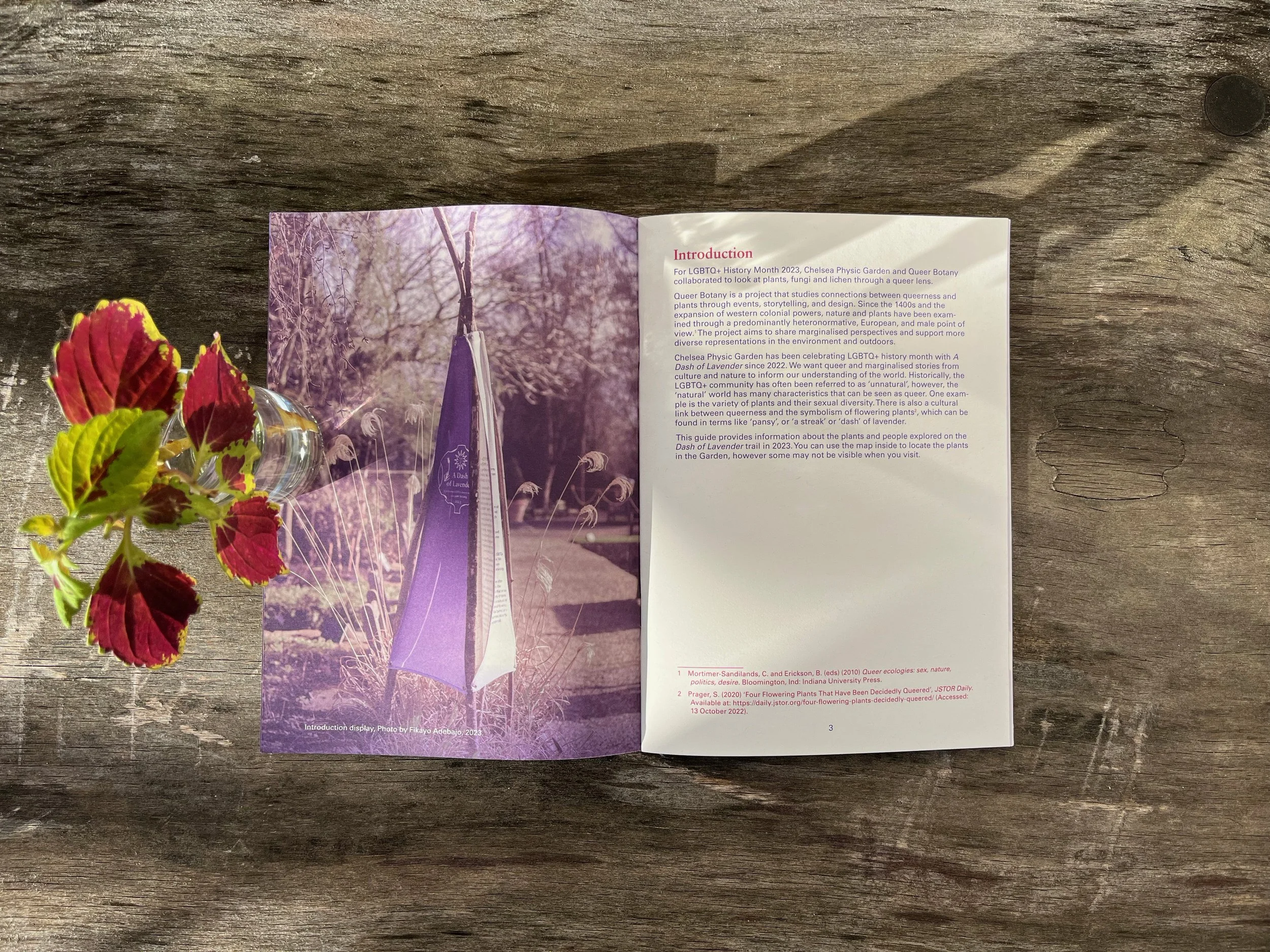 For LGBTQ+ History Month 2023, Chelsea Physic Garden and Queer Botany collaborated to look at plants, fungi and lichen through a queer lens. This book was first published in 2023, following the A Dash of Lavender exhibition at Chelsea Physic Garden. This booklet provides information about the plants and people explored in the exhibition. You can use the map inside to locate the plants in the Garden. It also includes a glossary and a section on LGBTQ+ scientists.
